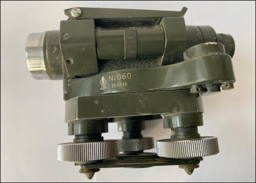 1 . Eines der ersten elektrischen Bügeleisen. Was bedeuten die Abkürzungen auf dem Firmenschild? D.R.G.M. : Deutsches Reichs-Gebrauchsmuster (= Vorstufe zu einem Patent) D.R.P. ang. : Deutsches Reichspatent angemeldet D.R.W.Z. : Deutsche Raiffeisen-Warenzentrale 2. Nivelliergerät Ni 060 von CARL ZEISS JENA mit Stativ - Aus früher DDR-Produktion. - Funktion: für Übertragungen von Fest- punkthöhen auf der Baustelle - Vorgängergerät wurde im 2. Weltkrieg von der Wehrmacht bei der Artillerie eingesetzt.