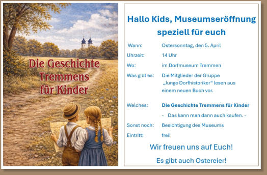 Öffnungszeiten: im Jahre 2026 vom 05. Apr - 25. Okt  jeden Samstag,Sonntag u. Feiertag von  13:30 bis 17:00 Uhr  Für Reisegruppen, Wandergruppen und Schulklassen nach Anmeldung auch werktags geöffnet!