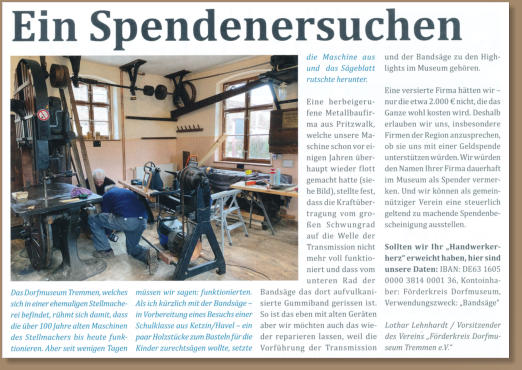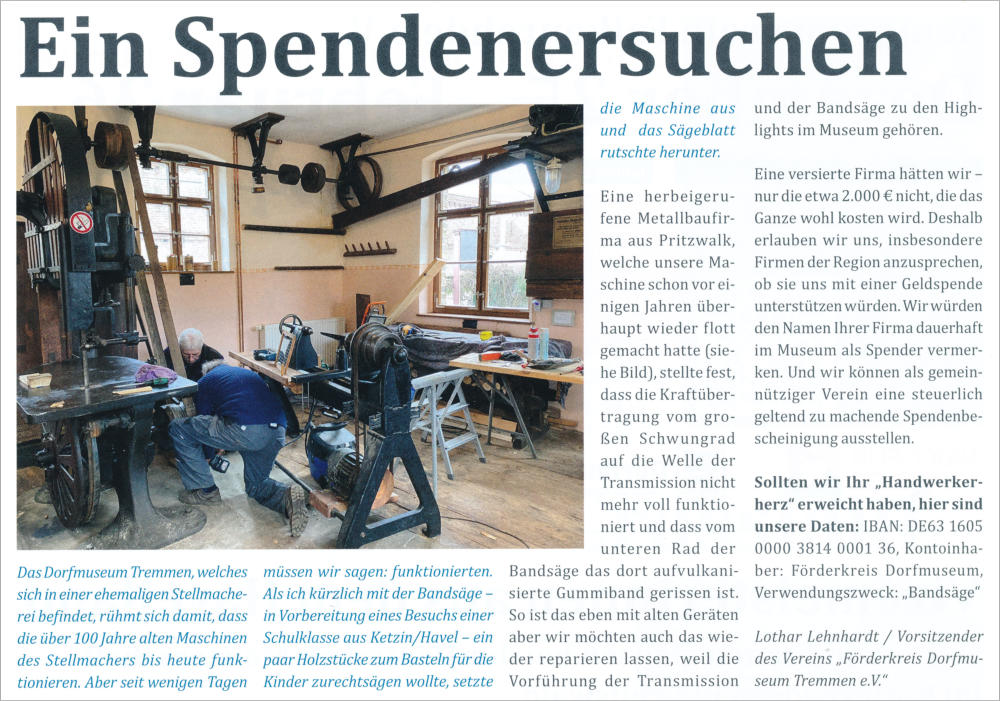 Wir erhielten im letzten Jahr zwei Schenkungen von Herrn Rainer Demmin aus Ketzin: