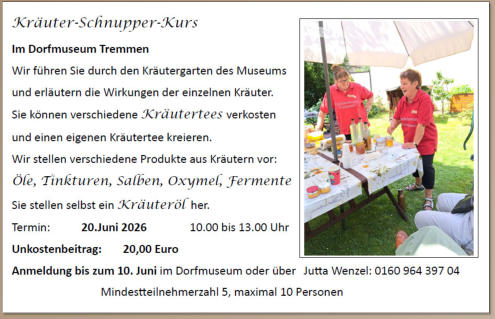 Ausblick auf eine weitere Veranstaltung des Dorfmuseums am 20. Juni: